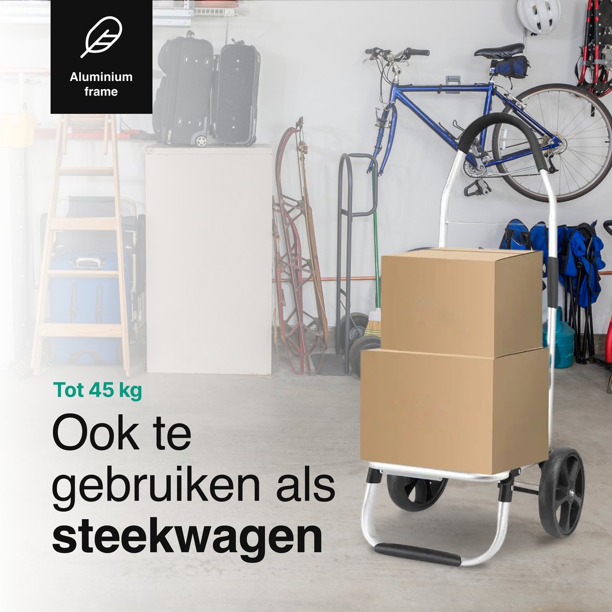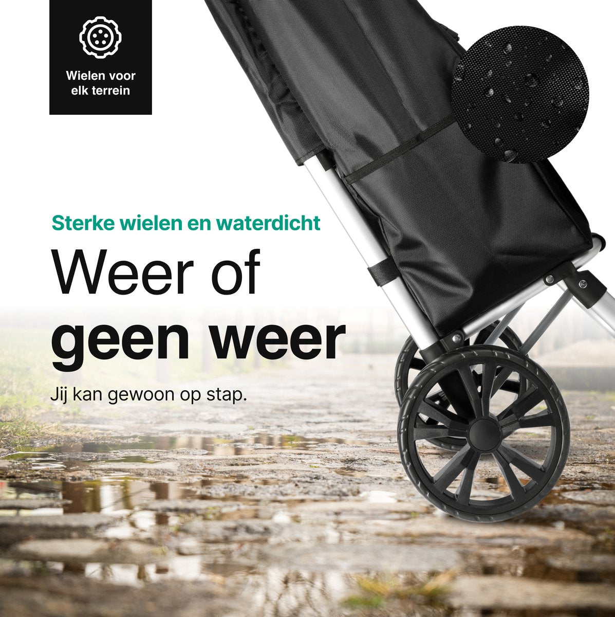Het hoogwaardige roestvrij aluminium frame maakt de boodschappenkar licht en duurzaam. Of je nou tegen een stoepje botst of door een regenbui loopt, jouw nieuwe aanwinst kan tegen een stootje.