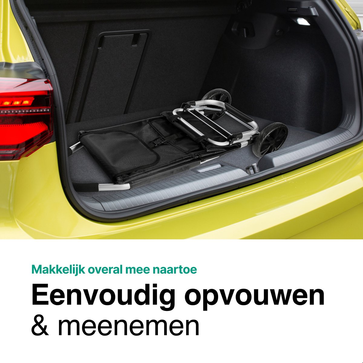 Gebruik je liever alleen een tas of wil je wat spullen opstapelen? Haal de boodschappentas eenvoudig van de trolley met 2 slimme klittenbandbevestigingen.
