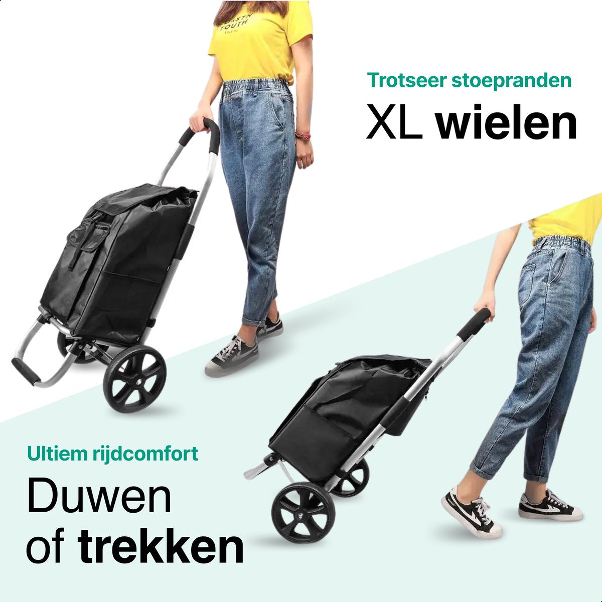 Au! Die lamme armen na het sjouwen van zware boodschappentassen! Herkenbaar, hè? Vermoeide spieren en pijnlijke schouders, allemaal omdat je geen auto hebt of omdat de (super)markt een eind weg is. Maar stel je voor: moeiteloos winkelen, zonder last. De Vivid Green boodschappentrolley op wieltjes maakt het mogelijk!
