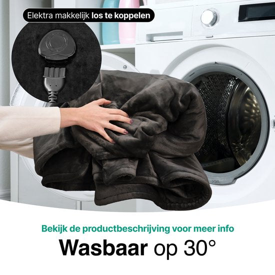 - Wasbaar tot 30°C – Handig afneembaar snoer, zodat je de deken in de wasmachine kunt reinigen.