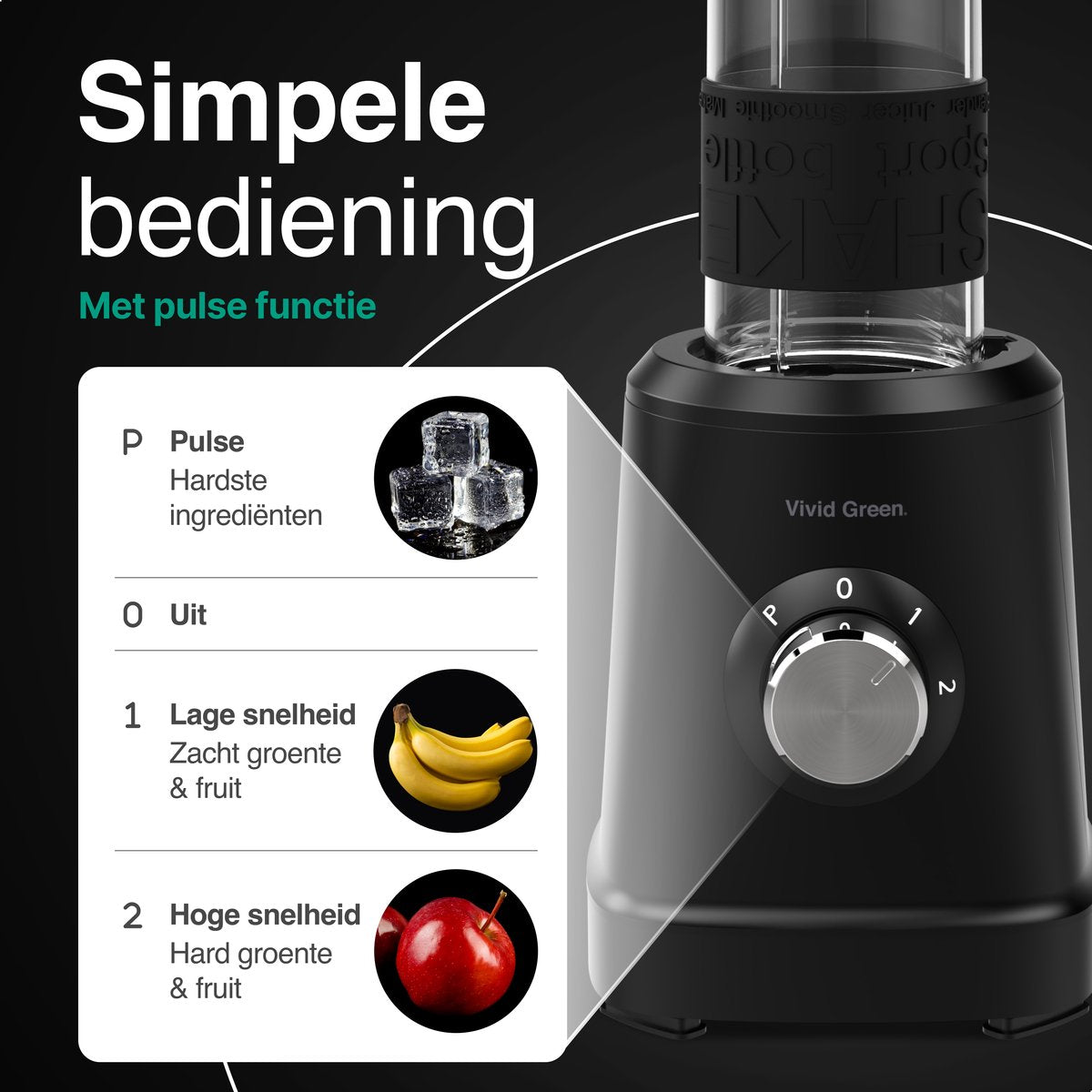 Start je smoothie-avontuur met de Vivid Green blender! Krachtig, eenvoudig in gebruik, en met een ruime glazen kan van 1,5 liter – ideaal voor elke dag. Of je nu een ijskoude smoothie maakt of groentes perst, deze blender maakt het een feestje in de keuken!