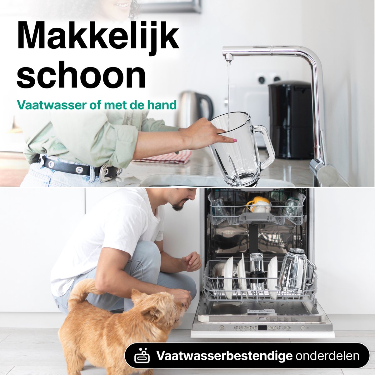 - Glazen kan van 1,5 liter – Robuust, vaatwasserbestendig en klaar voor grote porties.