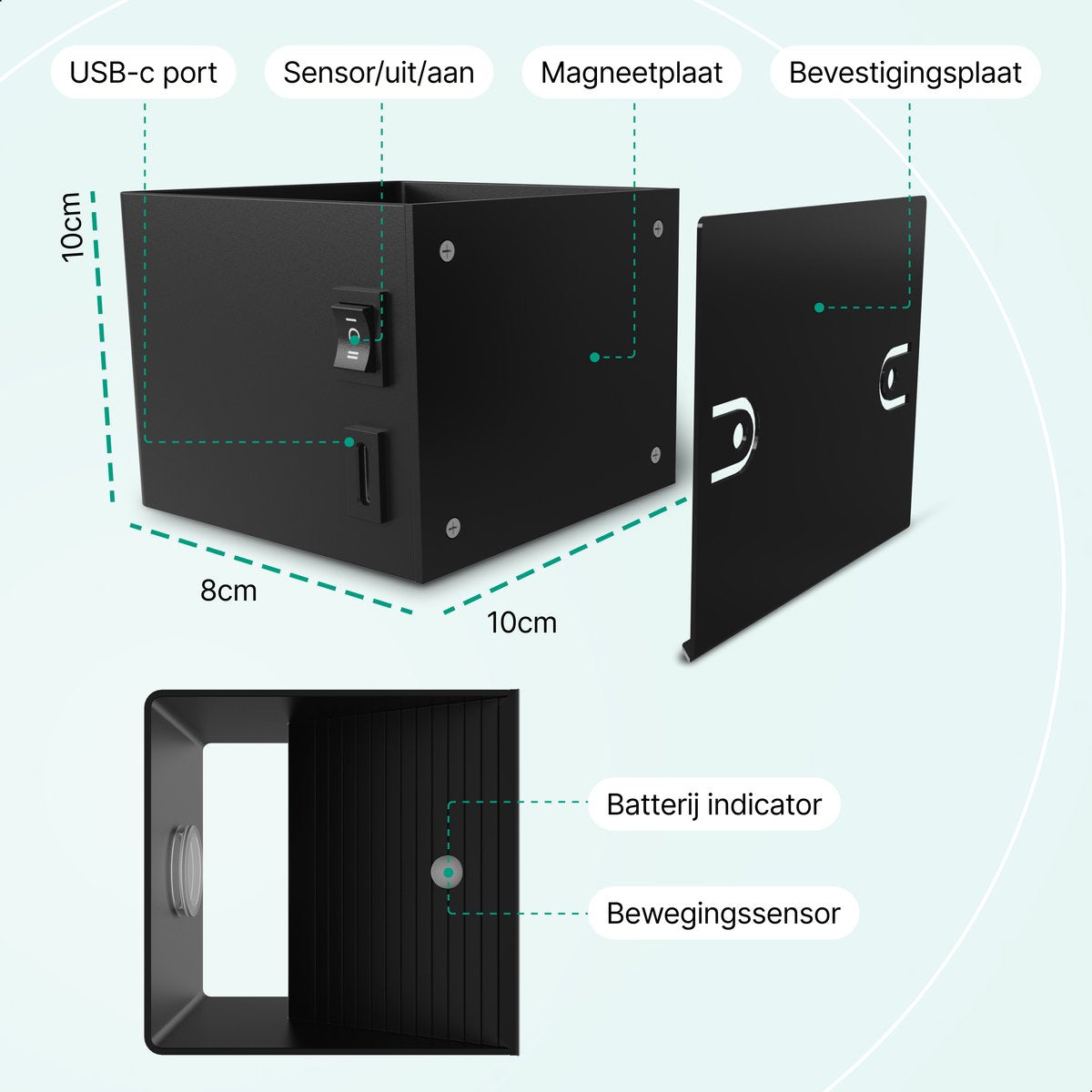 - Eenvoudig oplaadbaar – Dankzij de magnetische muurplaat kun je de lamp gemakkelijk losmaken en opladen via USB-C.
